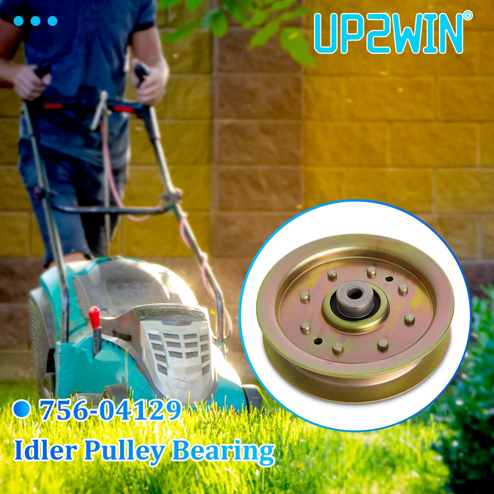 UP2WIN 756-04129 Flat Idler Pulley Compatible with Cub Cad et Troy-Bilt, Replace 756-04129B, 753-08171, 956-04129, Fit for Riding Lawn Mower Tractor with 42″ 46″ 48″ 50″ 54″ Deck, 2 Pack